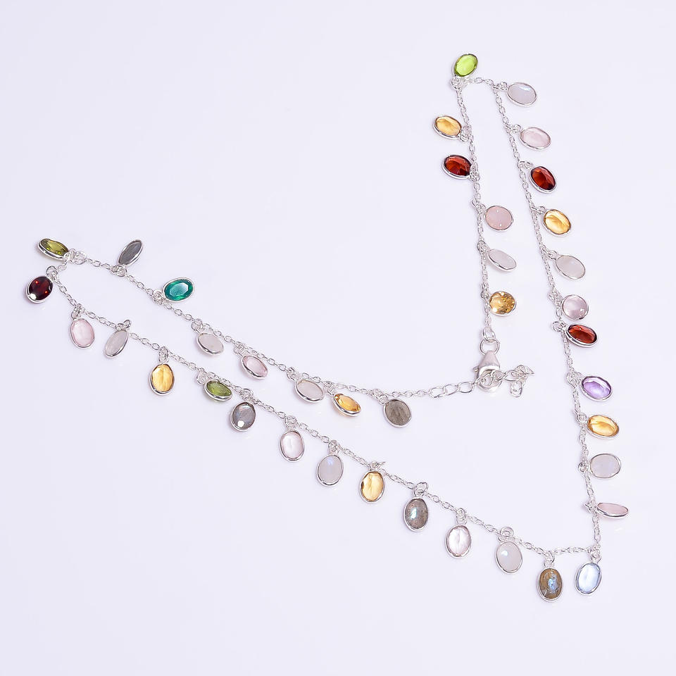 925 Sterling Silver Classic Design Mixed Cut Gemstones Necklace for Women Luxury Wedding Jewelry Gift For Her