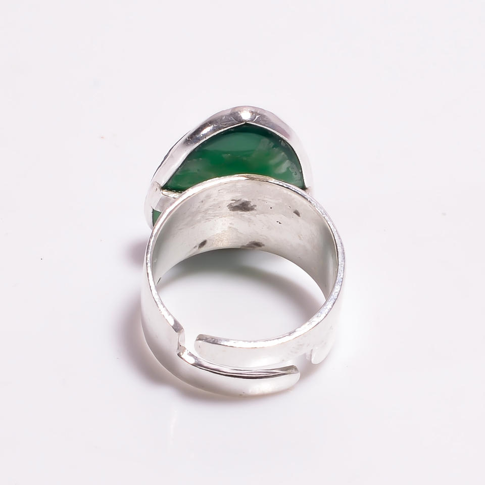 925 Sterling Silver Classic Fancy Cut Green Onyx Gemstone Ring High Quality Wedding Anniversary Party Jewelry for Engagement