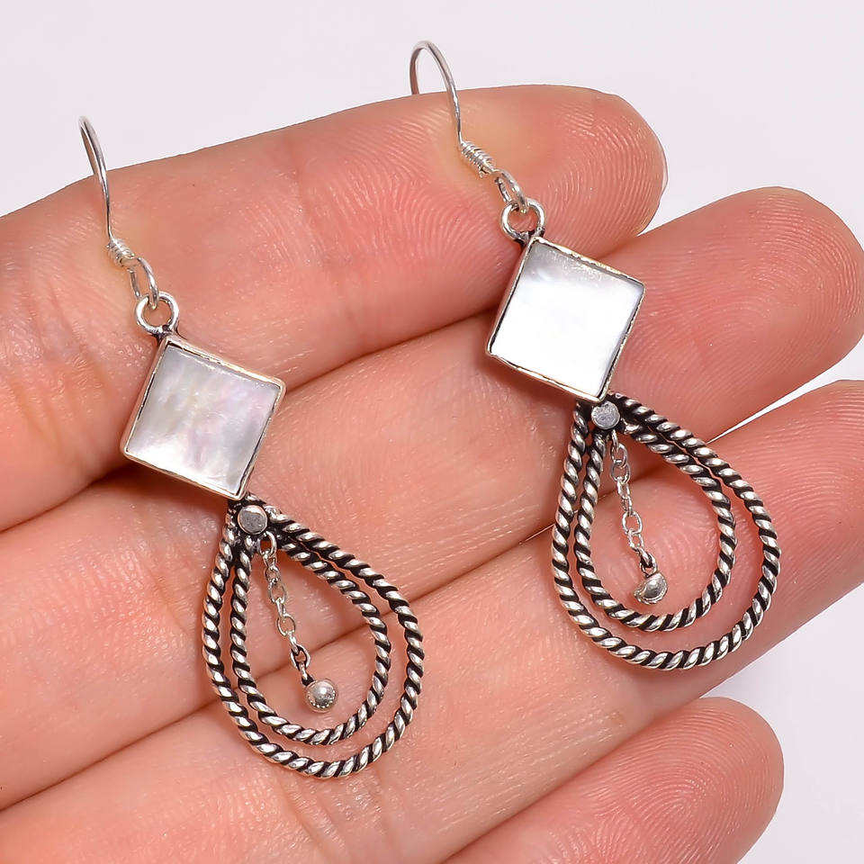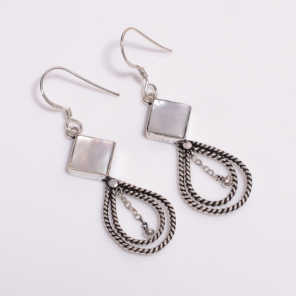 925 Sterling Silver Classic Fine Dangle Drop Earrings with Mother of Pearl Gemstone