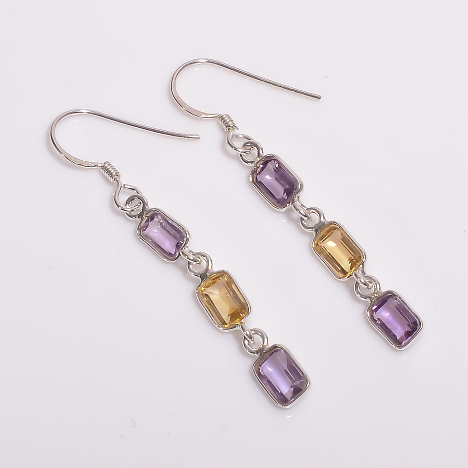 925 Sterling Silver Classic Fine Dangle Drop Earrings Elegant Drop Style with Mixed Gemstone Dangles for Women