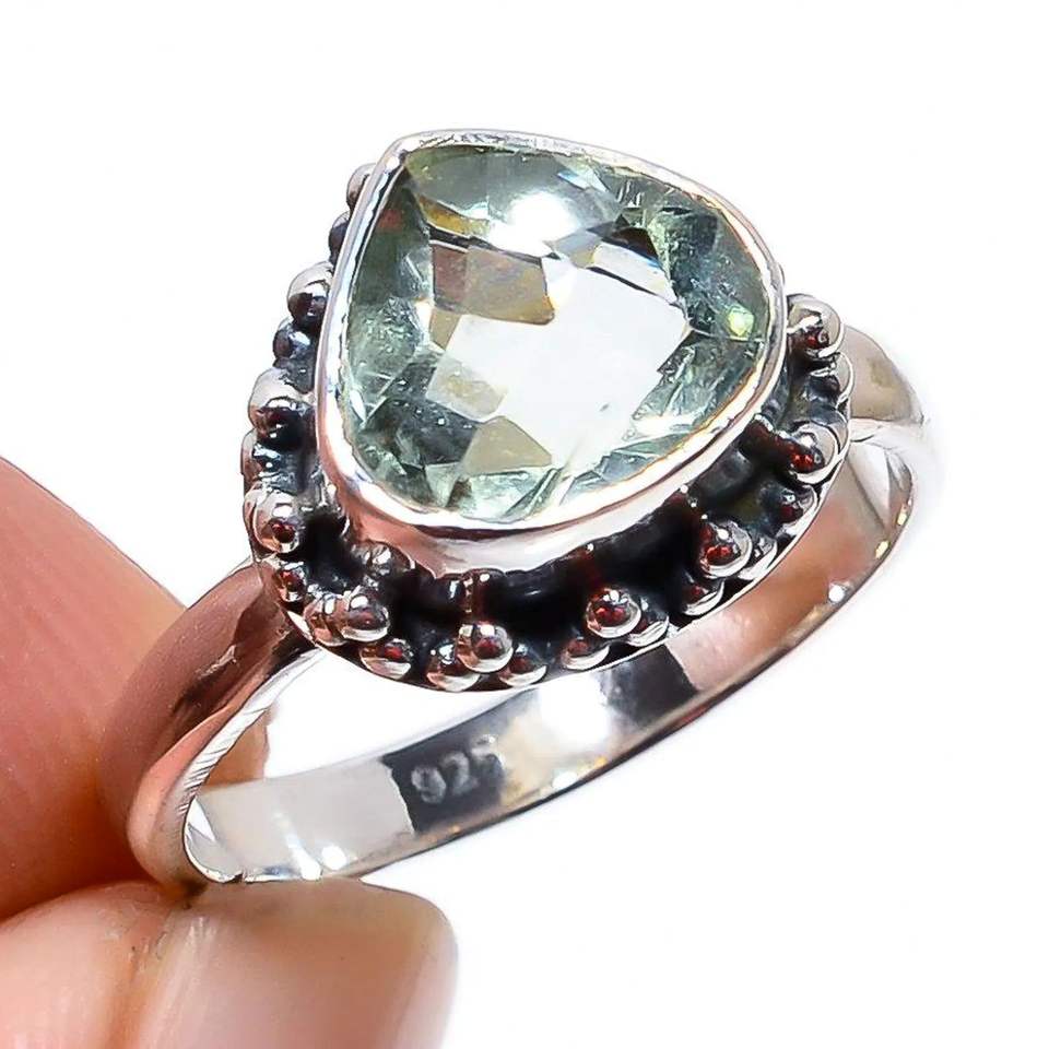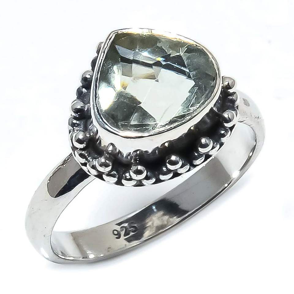 925 Sterling Silver Classic Fine Ring Heart Cut Green Amethyst Gemstone for Wedding Engagement Anniversary or Party Gift
