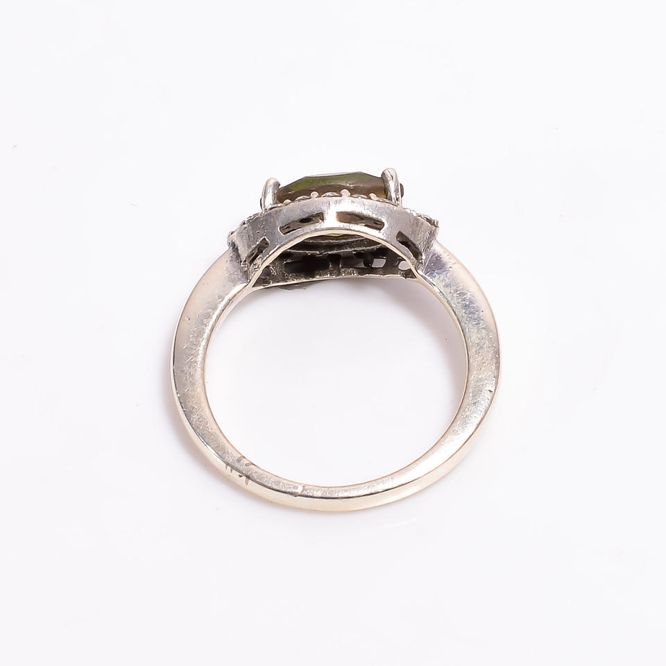 925 Sterling Silver Classic Jewelry Ring Oval Cut Peridot Gemstone for Wedding Engagement or Anniversary Set in Marquise Cut