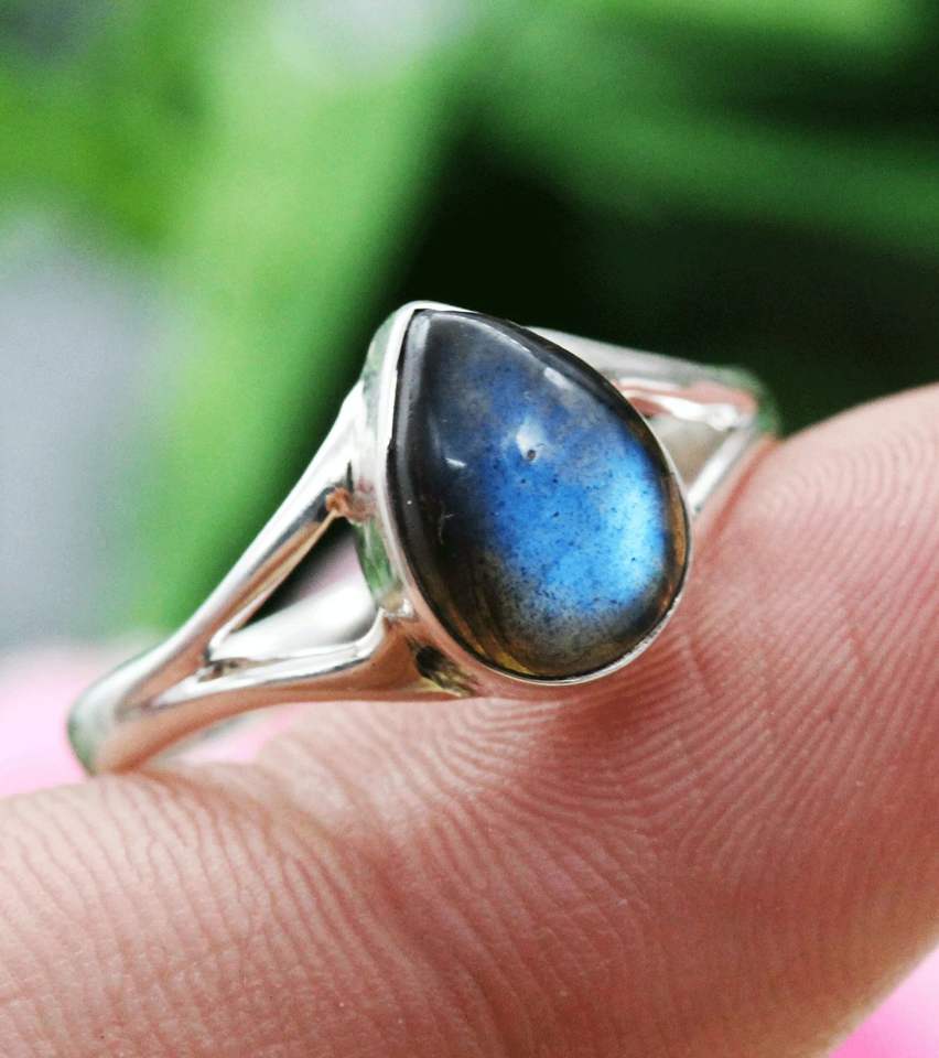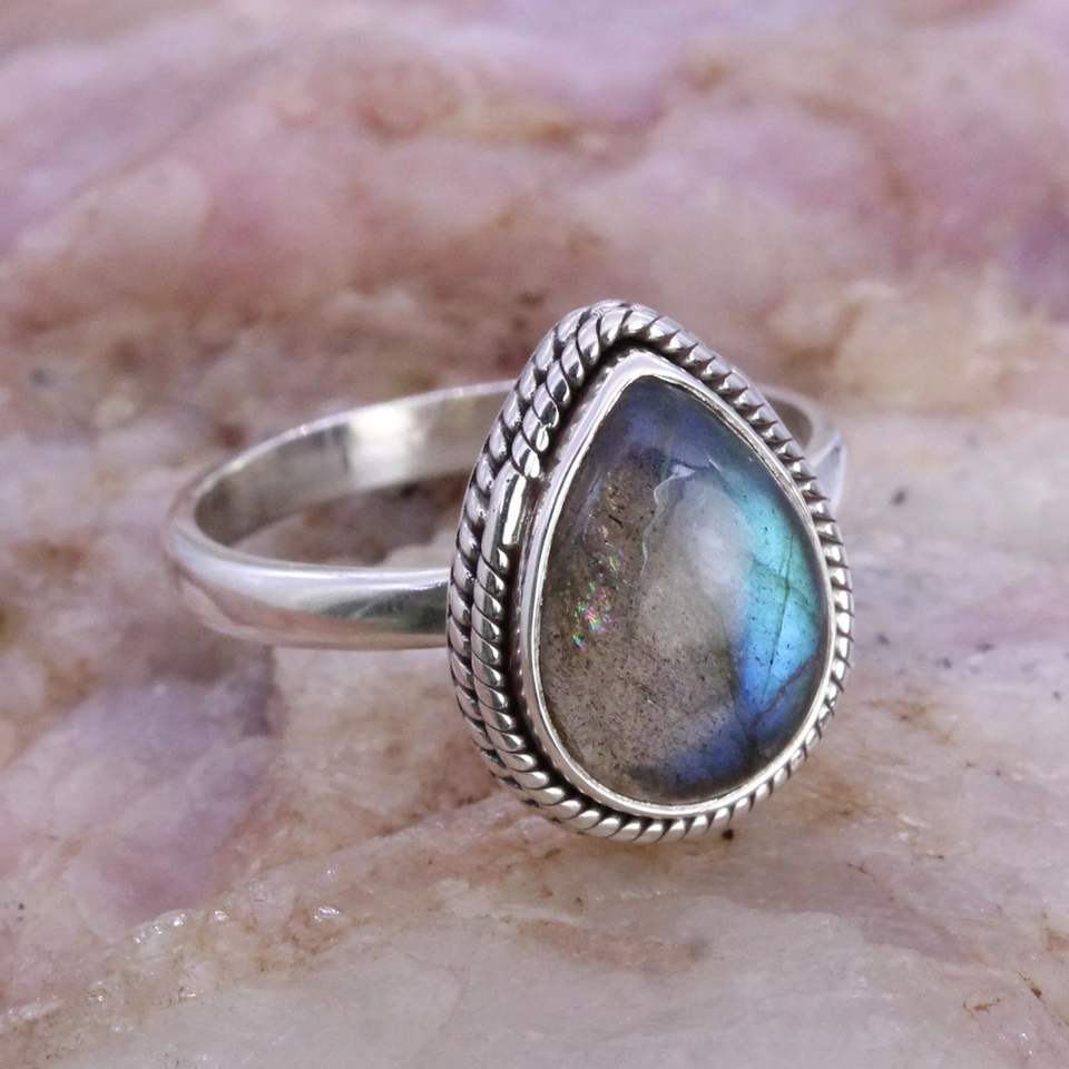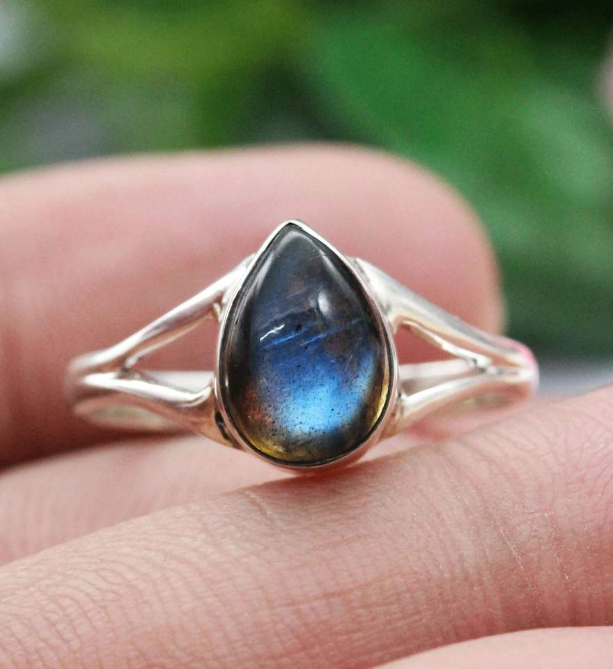925 Sterling Silver Classic Pear Cut Labradorite Gemstone Fine Ring for Unisex Weddings Parties Engagement Anniversary Gift
