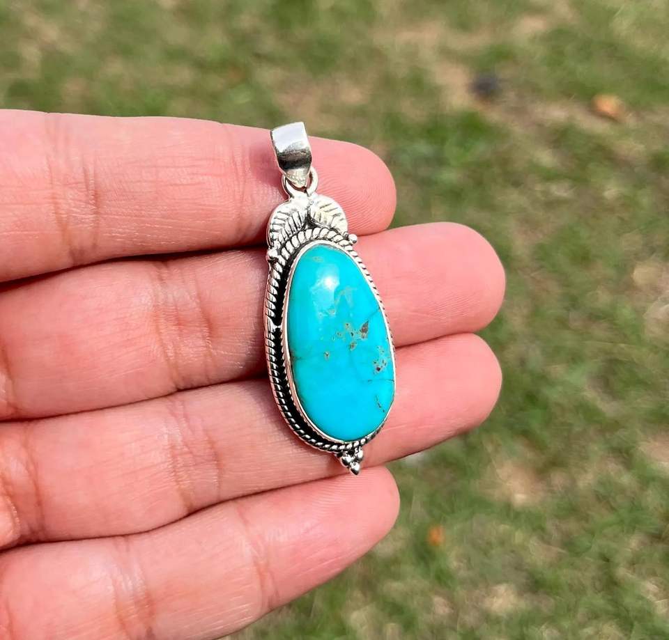 925 Sterling Silver Classic Pendant Fine Pendants & Charms with Turquoise Gemstone for Parties & Gifts
