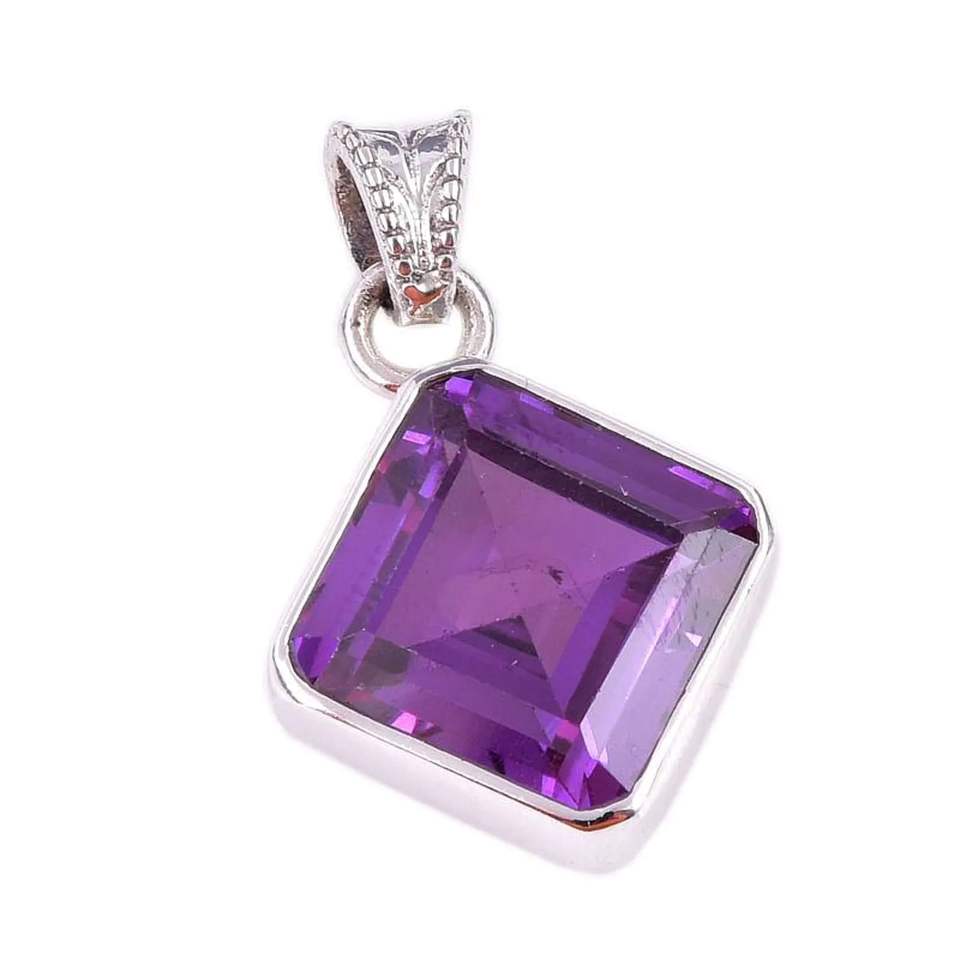 925 Sterling Silver Classic Square Cut Amethyst Gemstone Pendant for Parties & Fine Jewelry with Elegant Charms