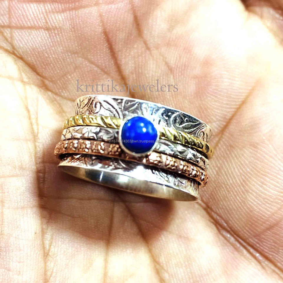 925 Sterling Silver Classic Spinner Ring for Women Lapis Lazuli Gemstone Bezel Setting for Weddings Anniversaries Parties