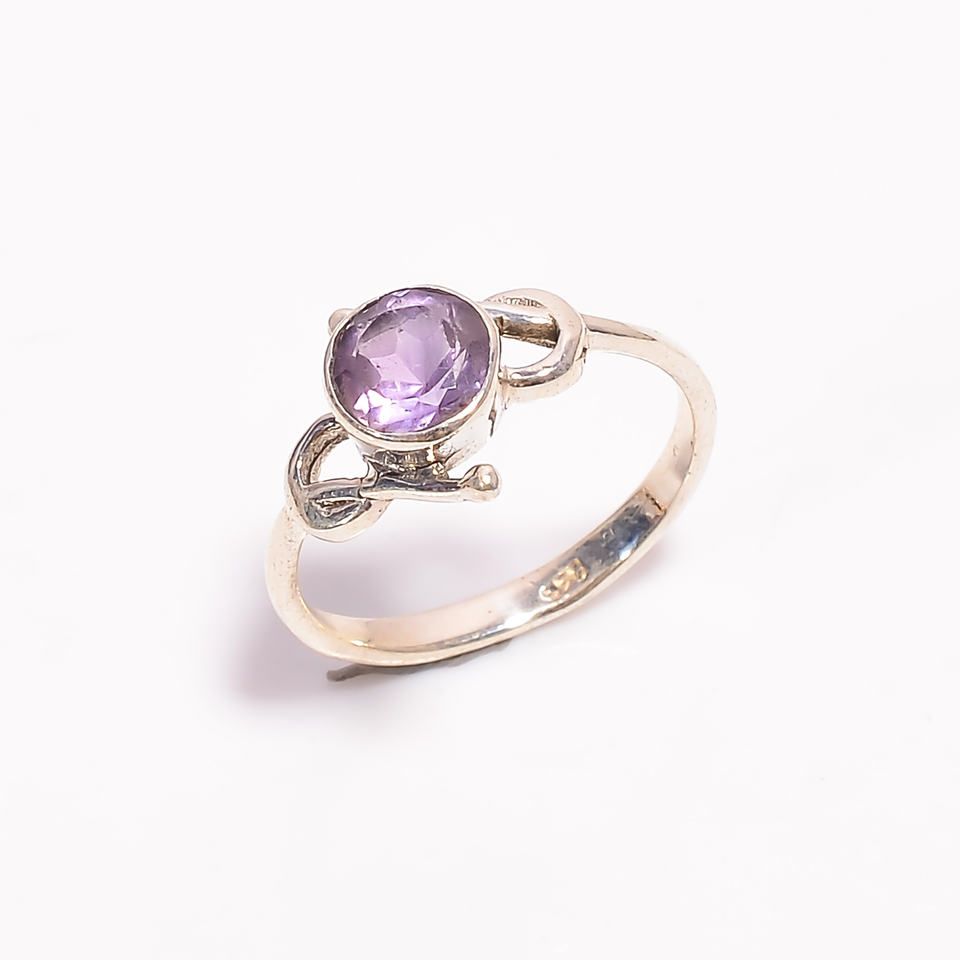 925 Sterling Silver Classic Style Fine Ring Amethyst Round Cut Gemstone Engagement Wedding Anniversary Party Gift