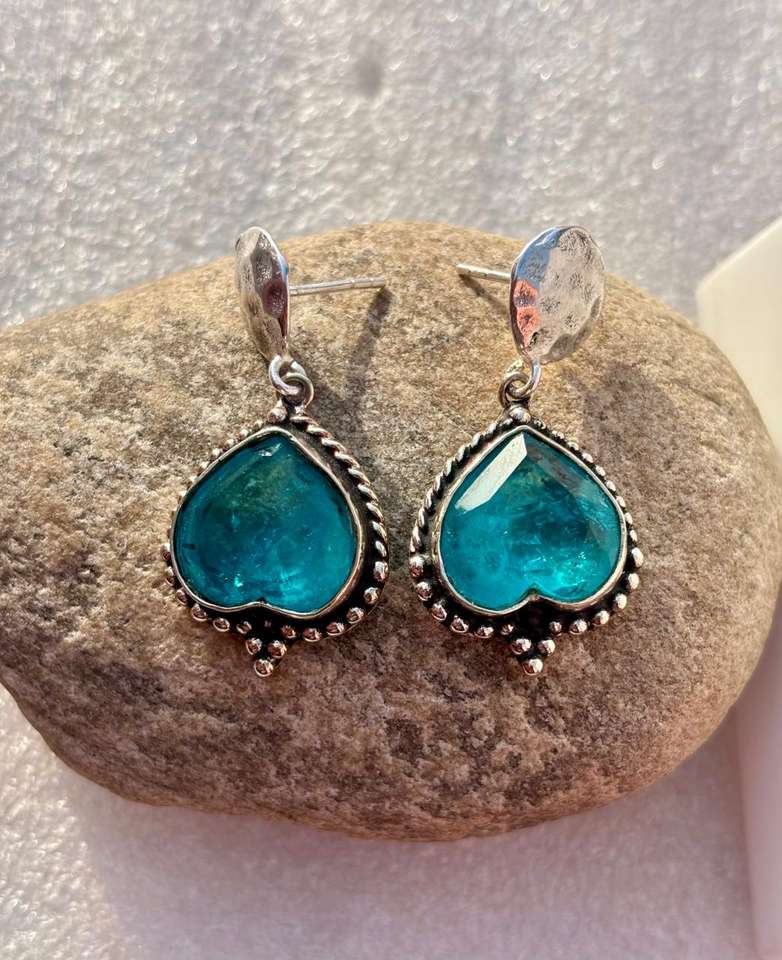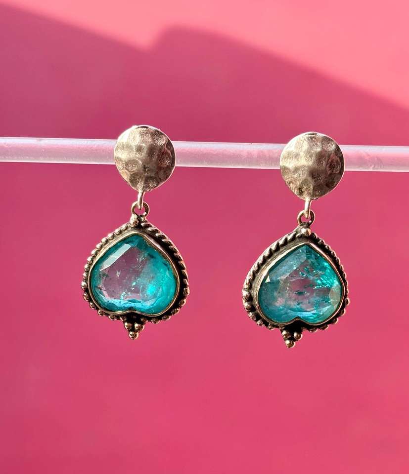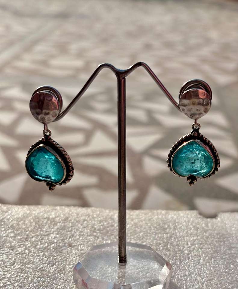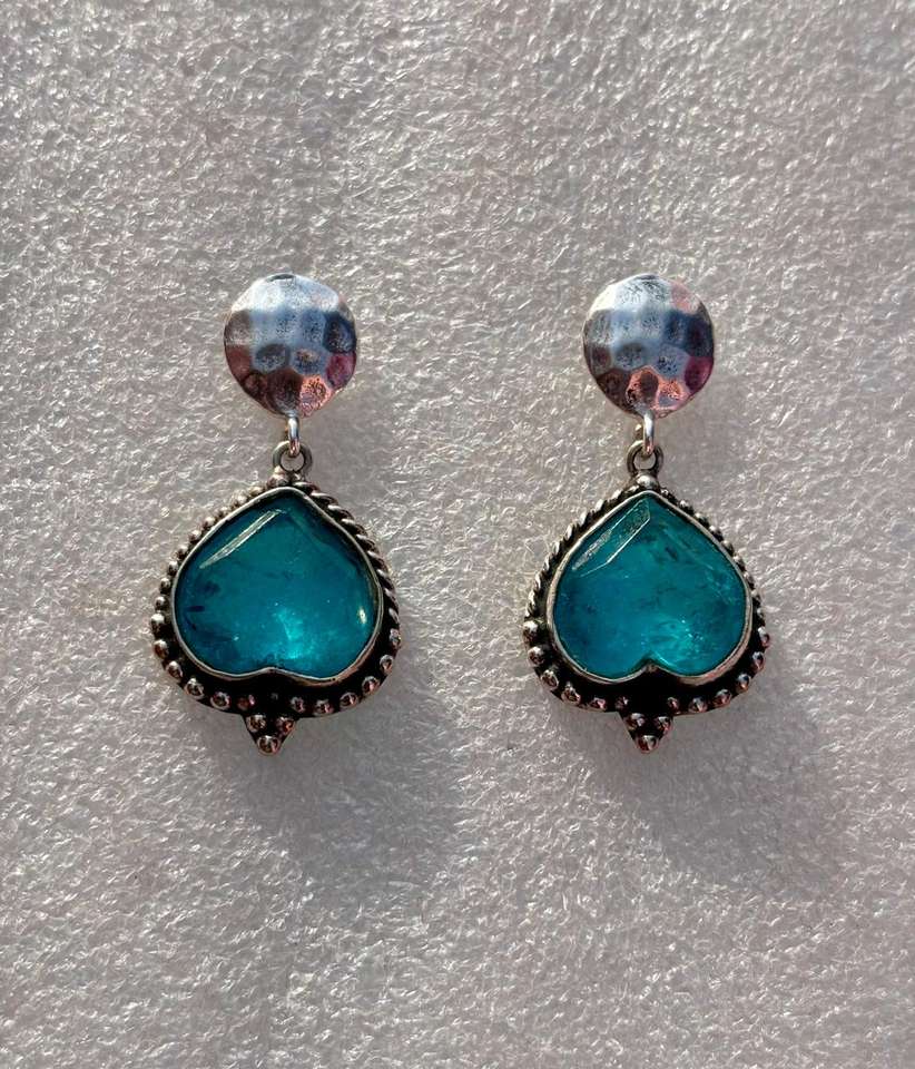 925 Sterling Silver Classic Style Paraiba Tourmaline Crystal Oxidised Hammered Stud Earrings