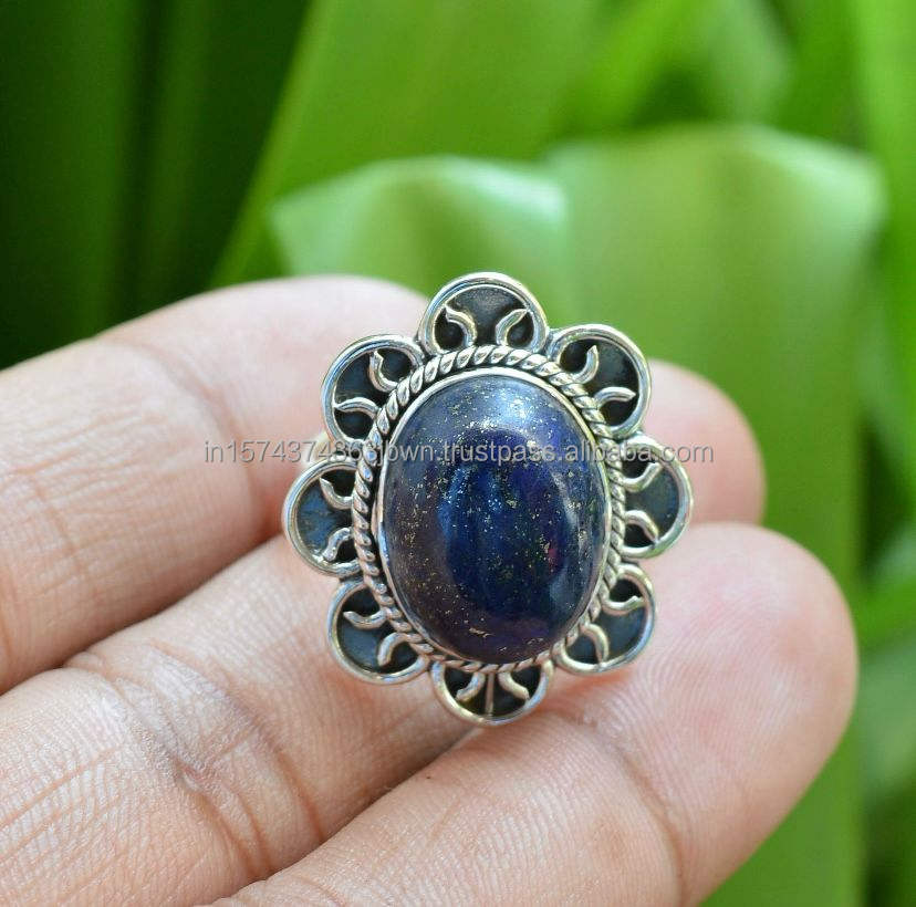 925 Sterling Silver Classic Style Women's Wedding Party Ring Natural Lapis Lazuli Gemstone Oval Cut Blue Stone Bezel Setting