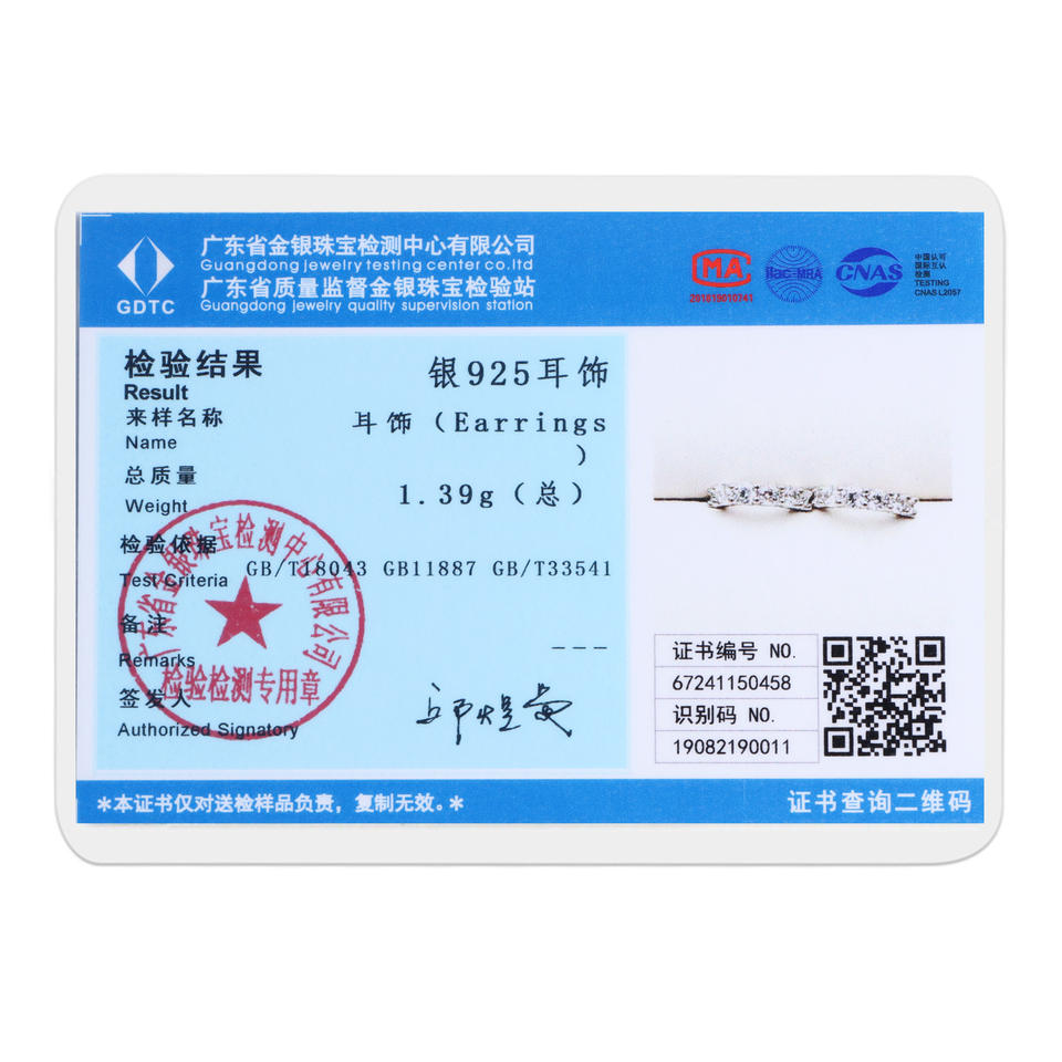 Purity of precious metals:92.5% sterling silver