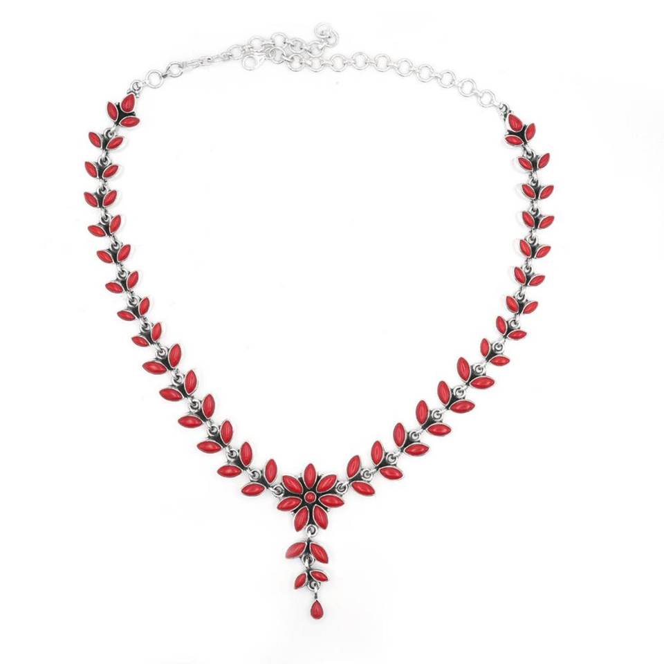 925 Sterling Silver Coral Necklace with Pearl Handmade Platinum Jewelry Gift for Her-NL0070-GS