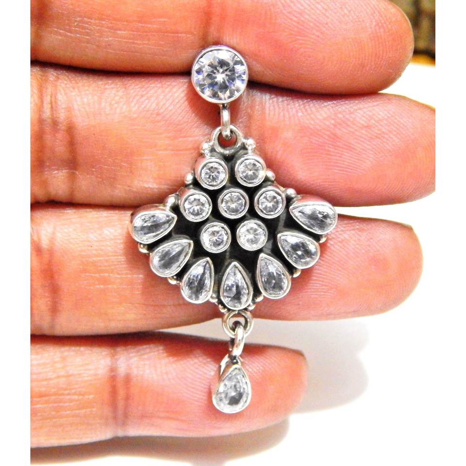 925 Sterling Silver Cubic Zirconia Earring Stud Faceted Gemstone Water Drop Shape Gift for Girls and Women