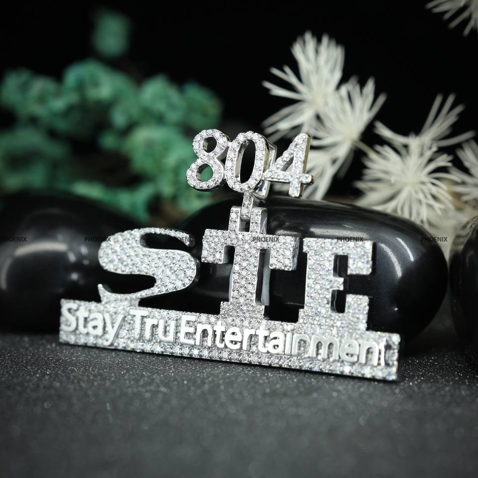 925 Sterling Silver Custom Moissanite Fancy Initial Name Hip Hop Round Brilliant Pendant for Men Women by Phoenix Enterprise
