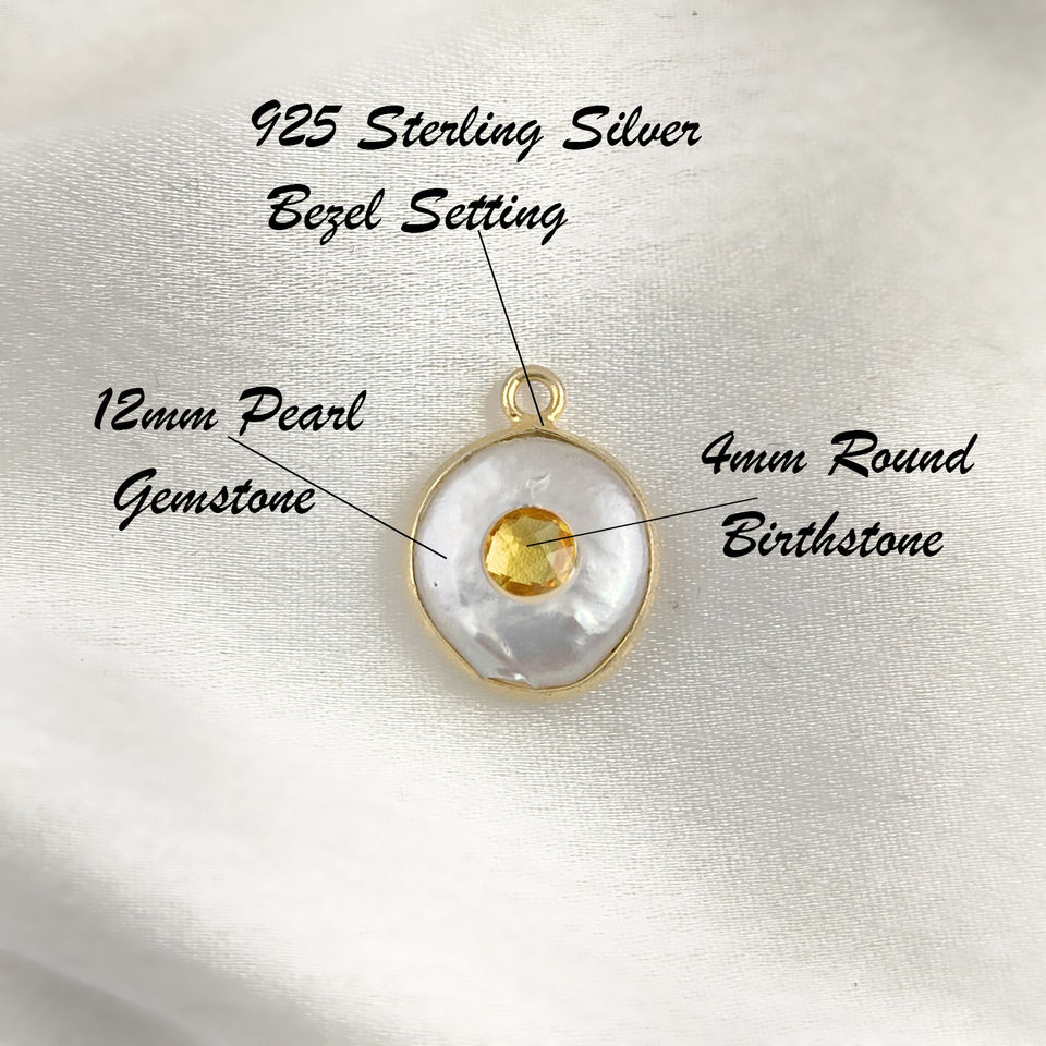 925 Sterling Silver DIY Jewelry Gold Vermeil Bezel Setting Birthstone Pearl Garnet Quartz Gemstone Pendants & Charms
