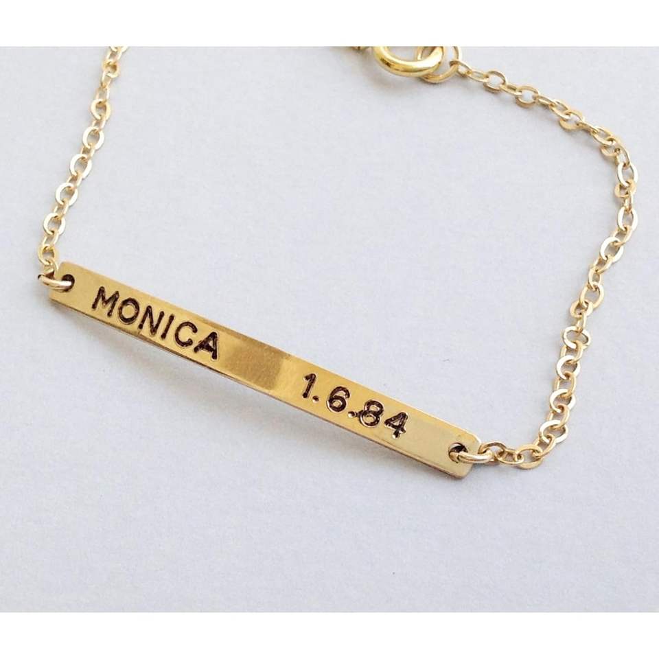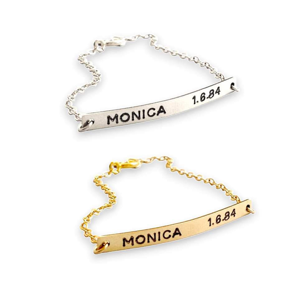 925 Sterling Silver Dainty Name Bar Bracelet Personalized Fine Charm Bracelet Statement Jewellery