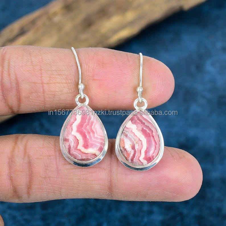 925 Sterling Silver Dangle Drop Earrings for Women Heart-shaped Rhodochrosite Drop Earrings Christmas Gift for Her for Weddings