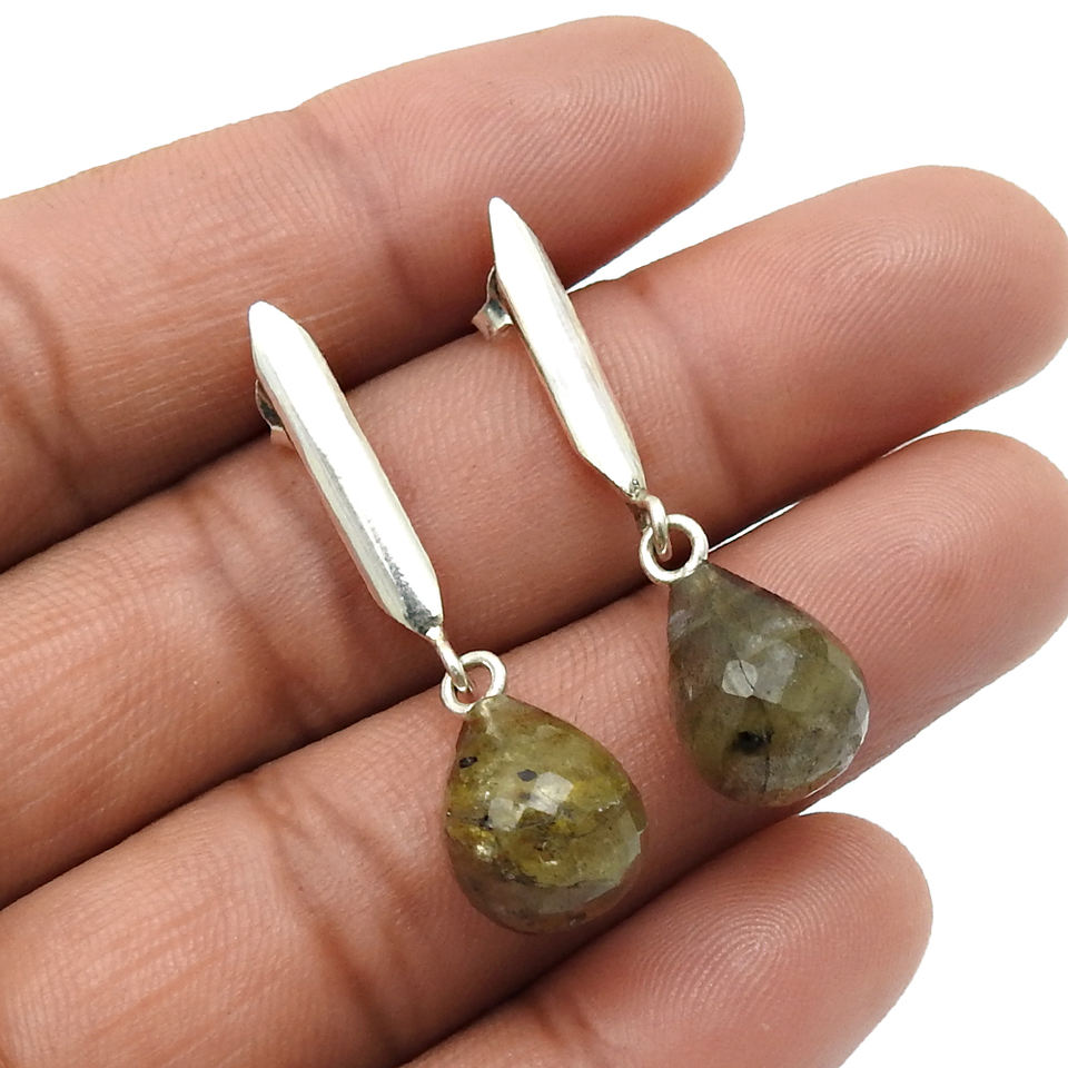 925 Sterling Silver Dangle Earrings Natural Labradorite Gemstone Classic Drop Design Earring for Wedding Engagement Party Wear