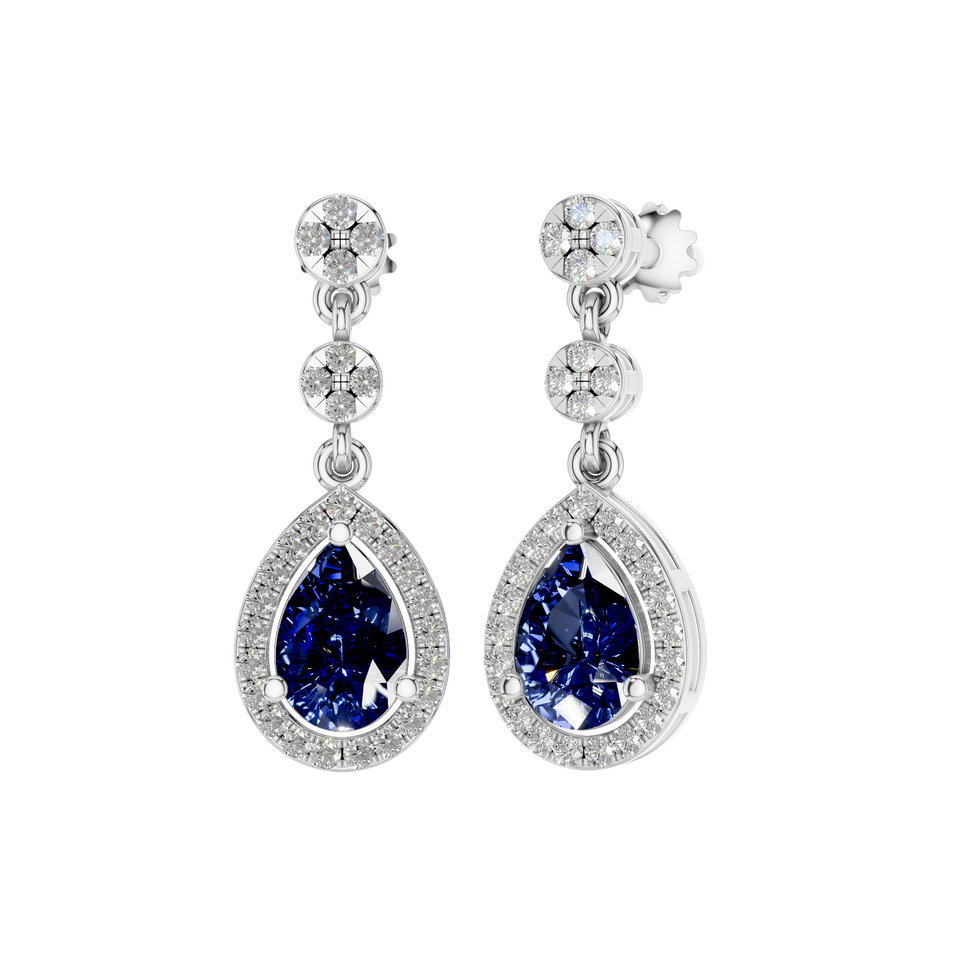 Style:Elegant Natural Pear-Cut Sapphire Earrings with Diamond Halo