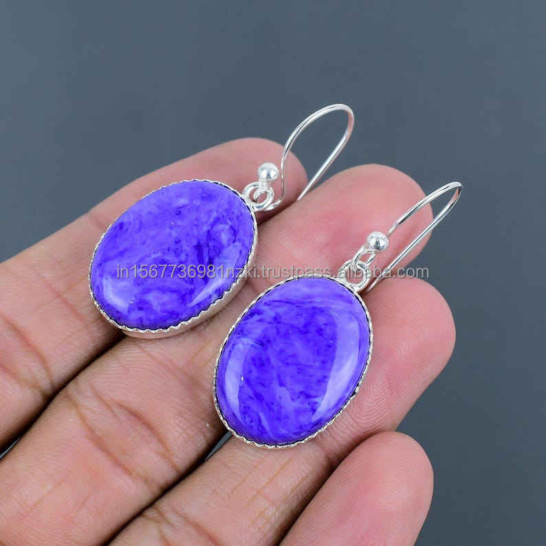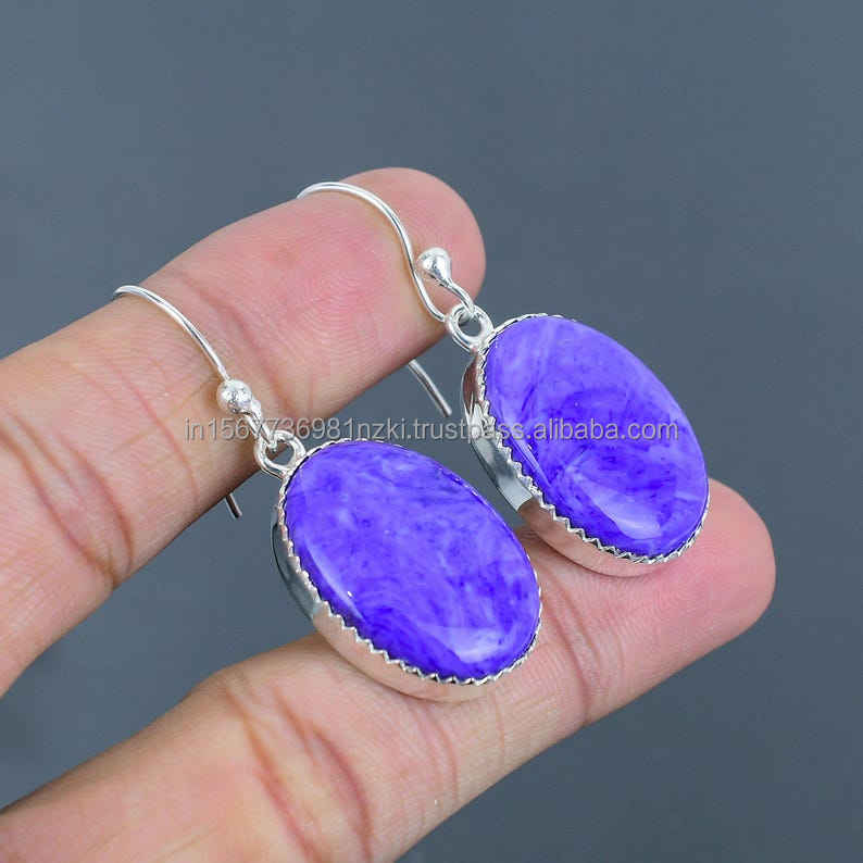 925 Sterling Silver Dangle Earrings with Charoite Gemstone Handmade Awesome Jewelry for Women Great Gift Idea for Her