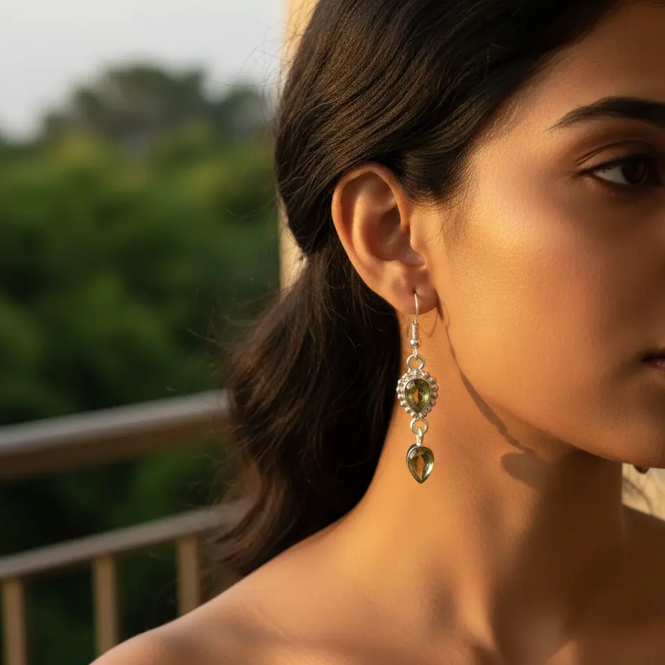 925 Sterling Silver Dangle Earrings with Green Gemstone Gold Plated and Diamond for Wedding or Party Christian Jewelry