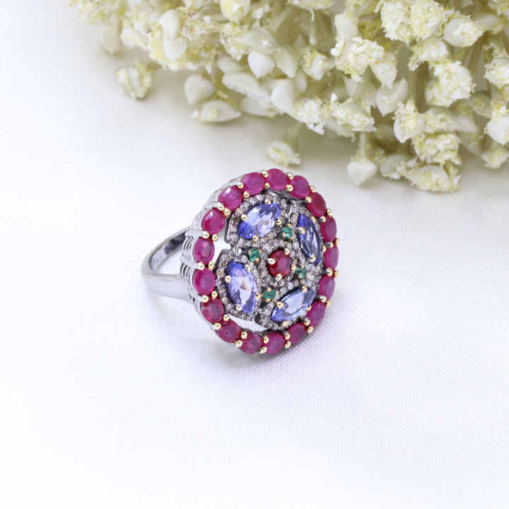 Item Name:Multi Gemstone & Diamond Silver Ring