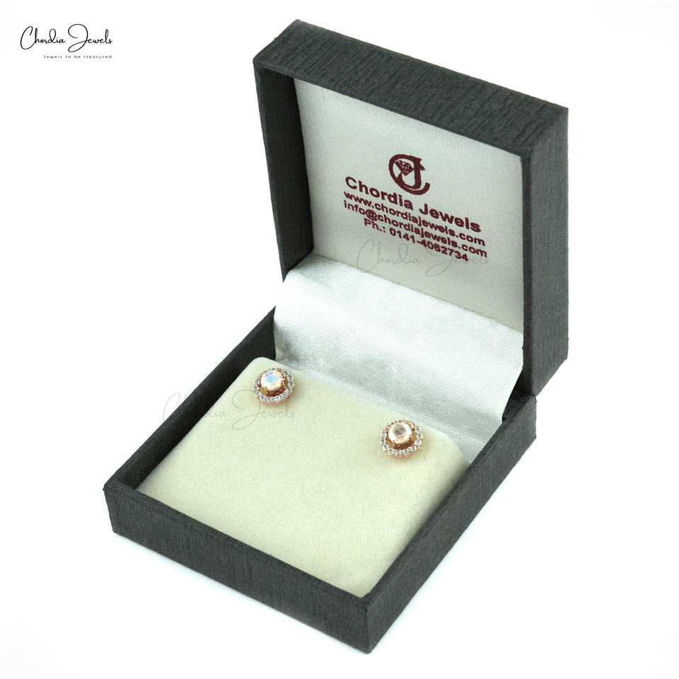 925 Sterling Silver Detachable Halo Stud Earrings Rose Gold Rhodium Plated Natural Rainbow Moonstone White Zircon Anniversary