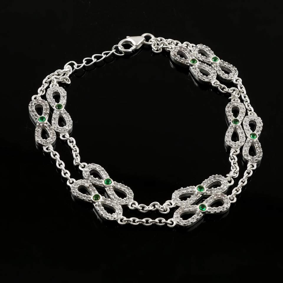 925 Sterling Silver Double-Layer Infinity Bracelet with White & Green CZ Charms Elegant Wedding Party Jewellery Gift