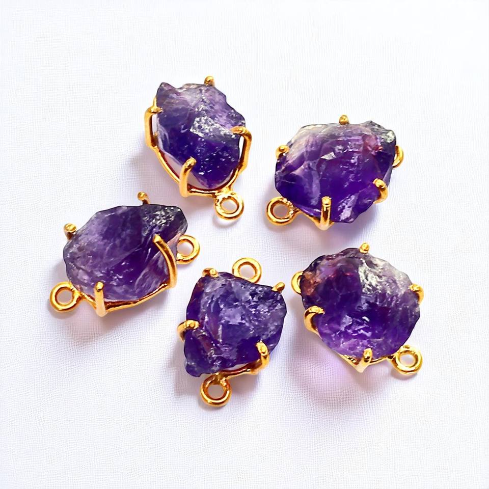 925 Sterling Silver Double Loop Prong Setting DIY Jewelry Making Connector Bulk Wholesale Rough Amethyst Fine Pendants Charms