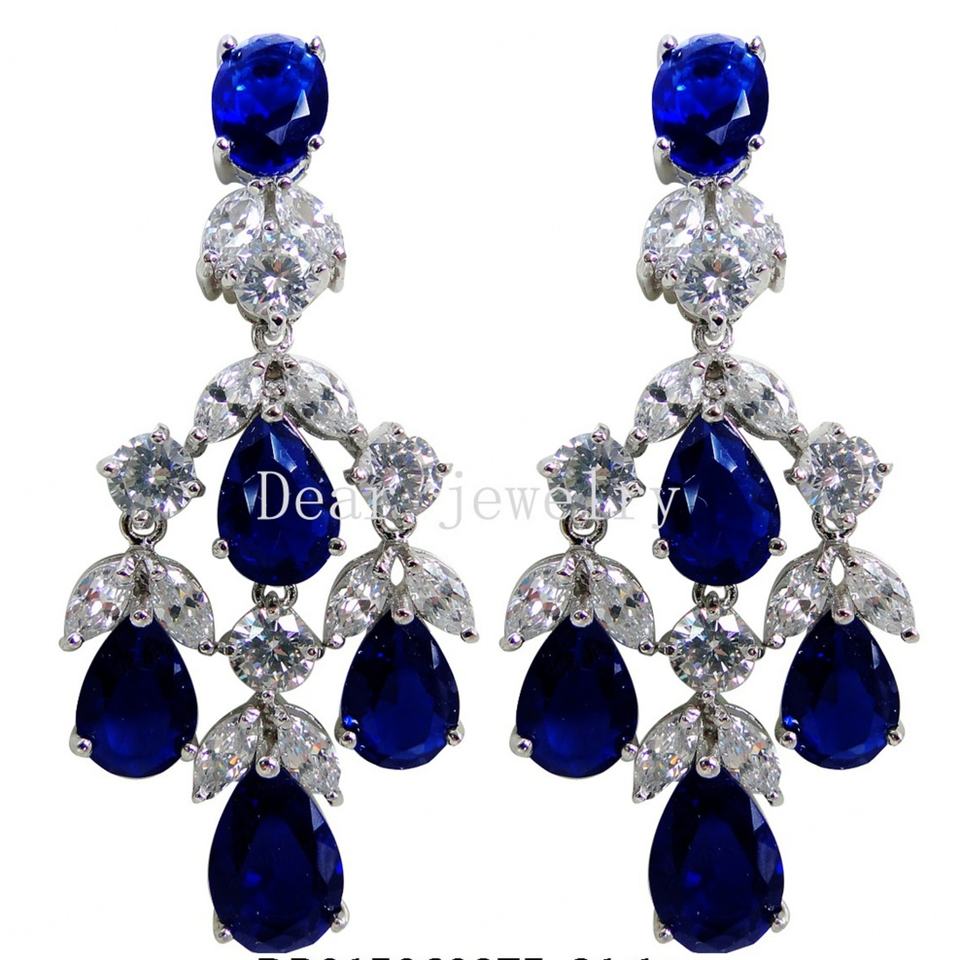 925 Sterling Silver Drop Earrings for Women Fashionable Sapphire and Multi-Zircon Stone Jewelry Gold Plated for Weddings