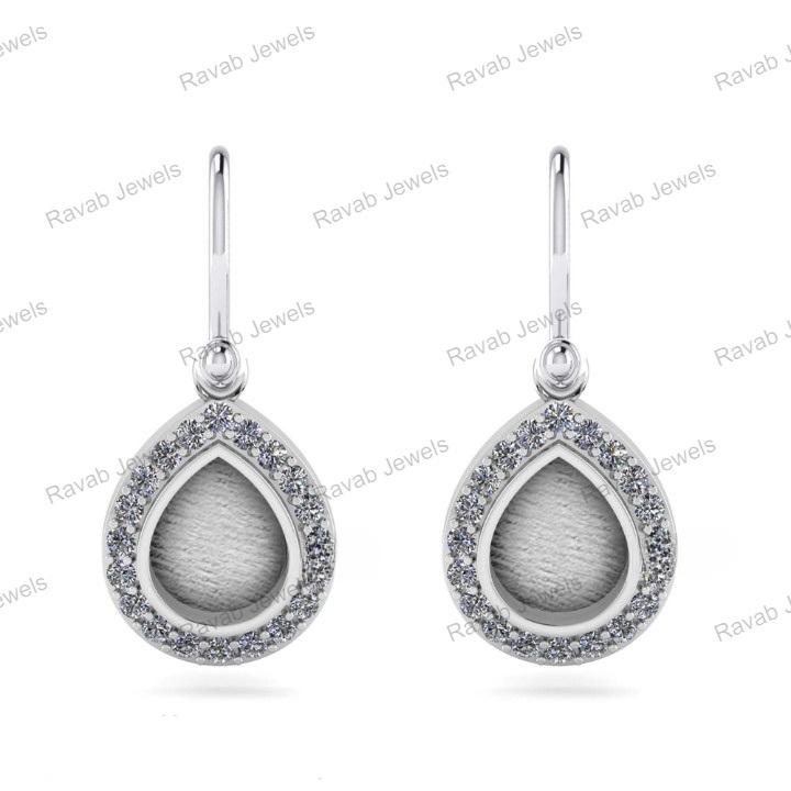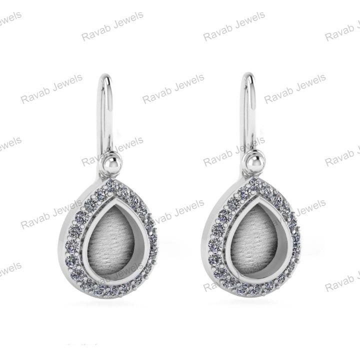 925 Sterling Silver Earring 8x10mm Pear Cut CZ Mounts 14K Gold Resin Keepsake Custom High Design for Women Perfect Gift Jewelry