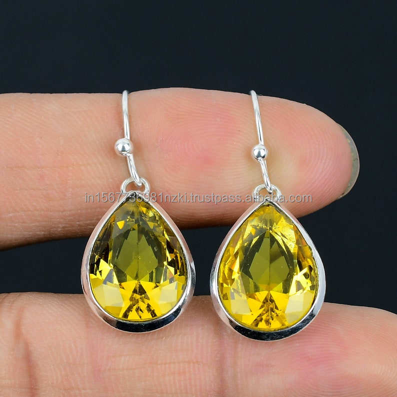 925 Sterling Silver Earring Beautiful Gemstone Cabochon Stone Earring Birthday Citrine Earring Gift For Her For Women