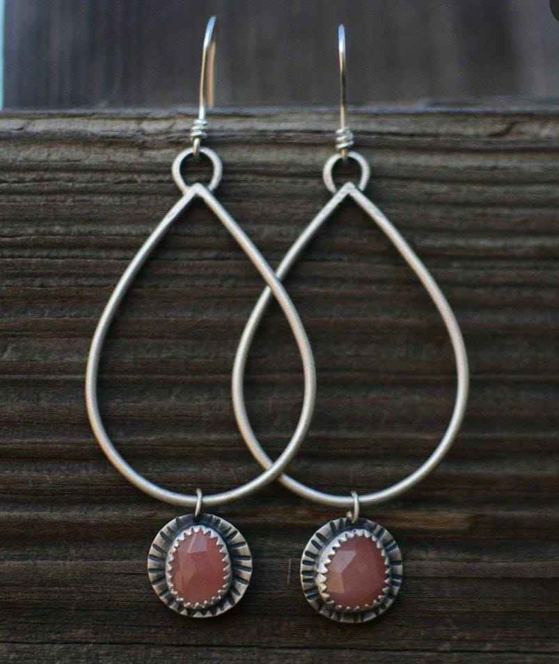 Rhodochrosite Natural Gemstone Earring Silver Statement Jewelry