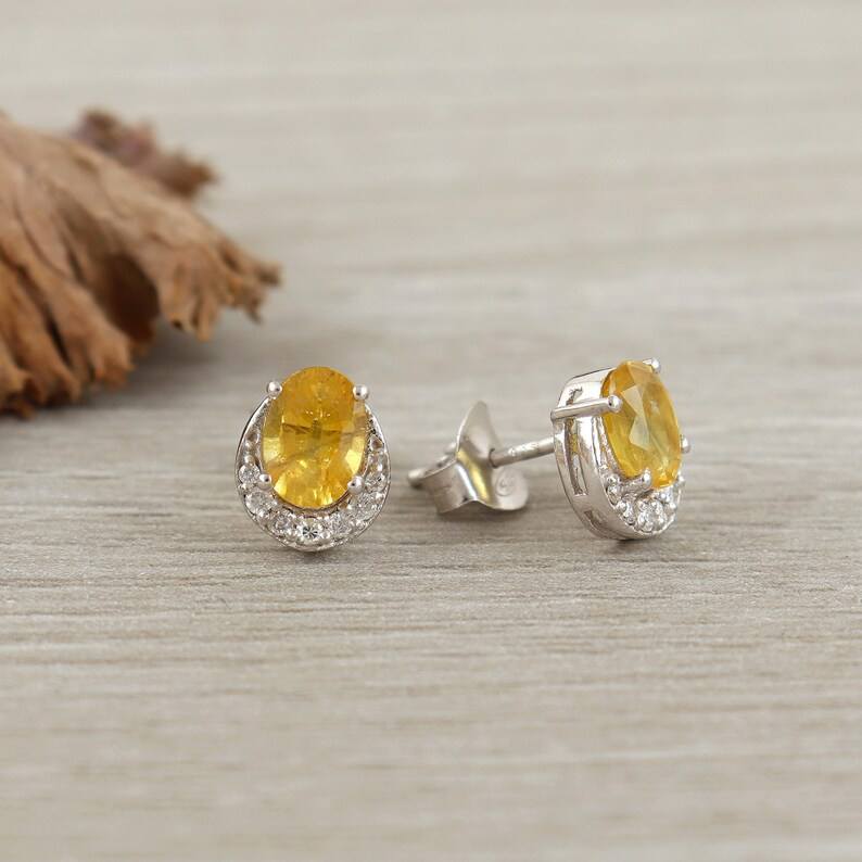 925 Sterling Silver Earring Real Yellow Sapphire Cubic Zirconia Cute for Anniversary Party September Birthstone 100% Real Yellow