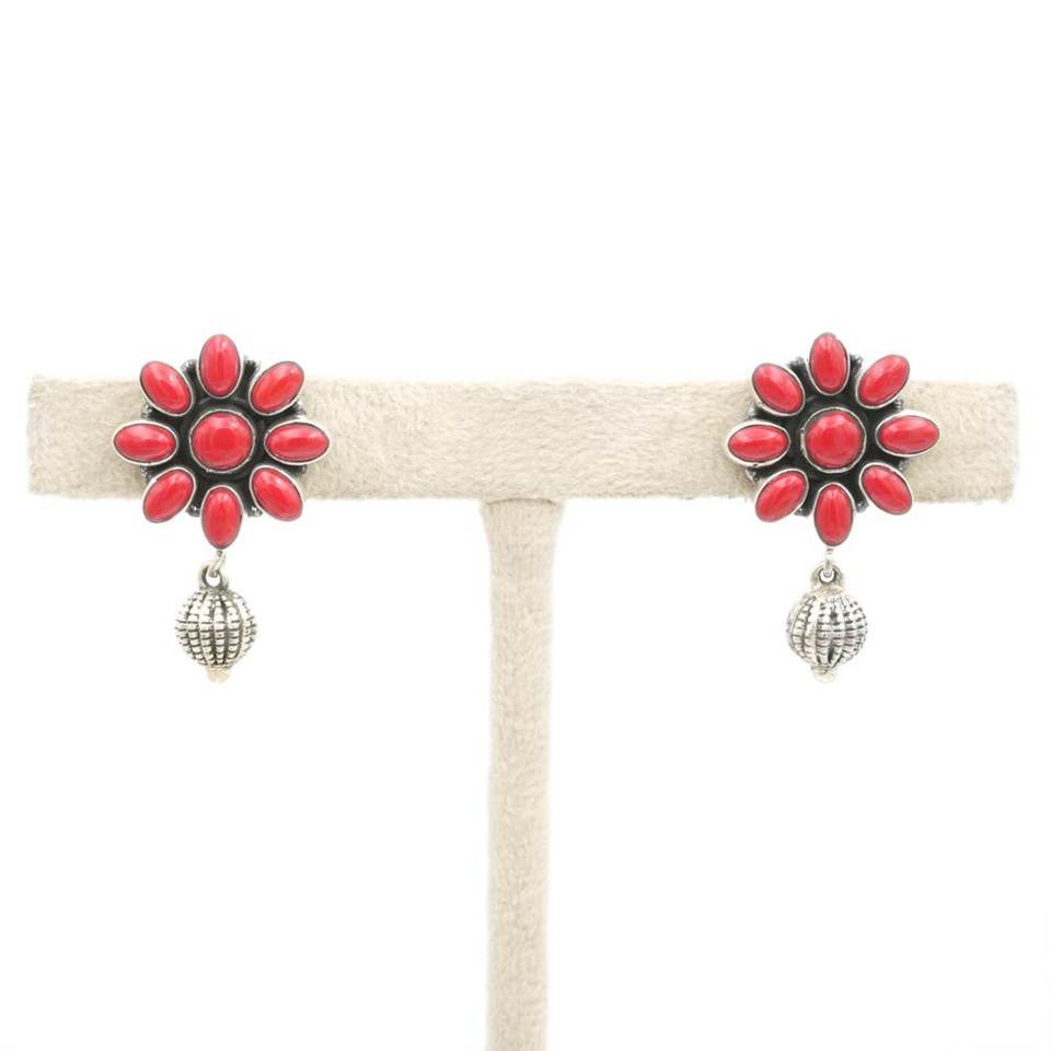 925 Sterling Silver Earring Stud Natural Red Coral Elegant Wedding Jewelry Perfect Anniversary Gift for Her Gold-Material