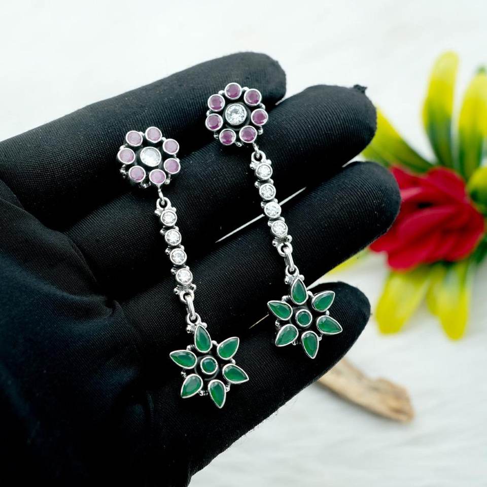 925 Sterling Silver Earring Stud Natural Ruby Emerald & CZ Rose Gold Perfect Wedding Gift