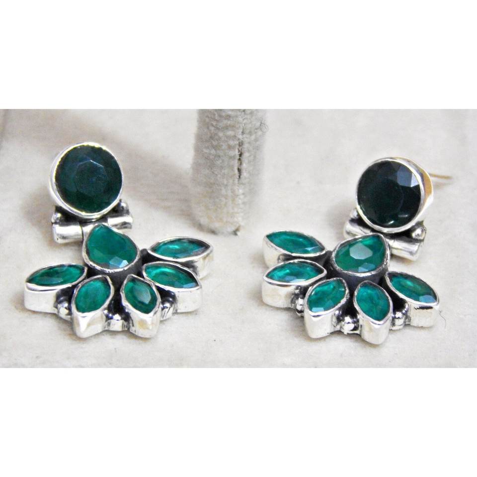 925 Sterling Silver Earring Studs with Natural Green Onyx & Light Weight Emerald Diamond Gemstone Silver Emerald Earring