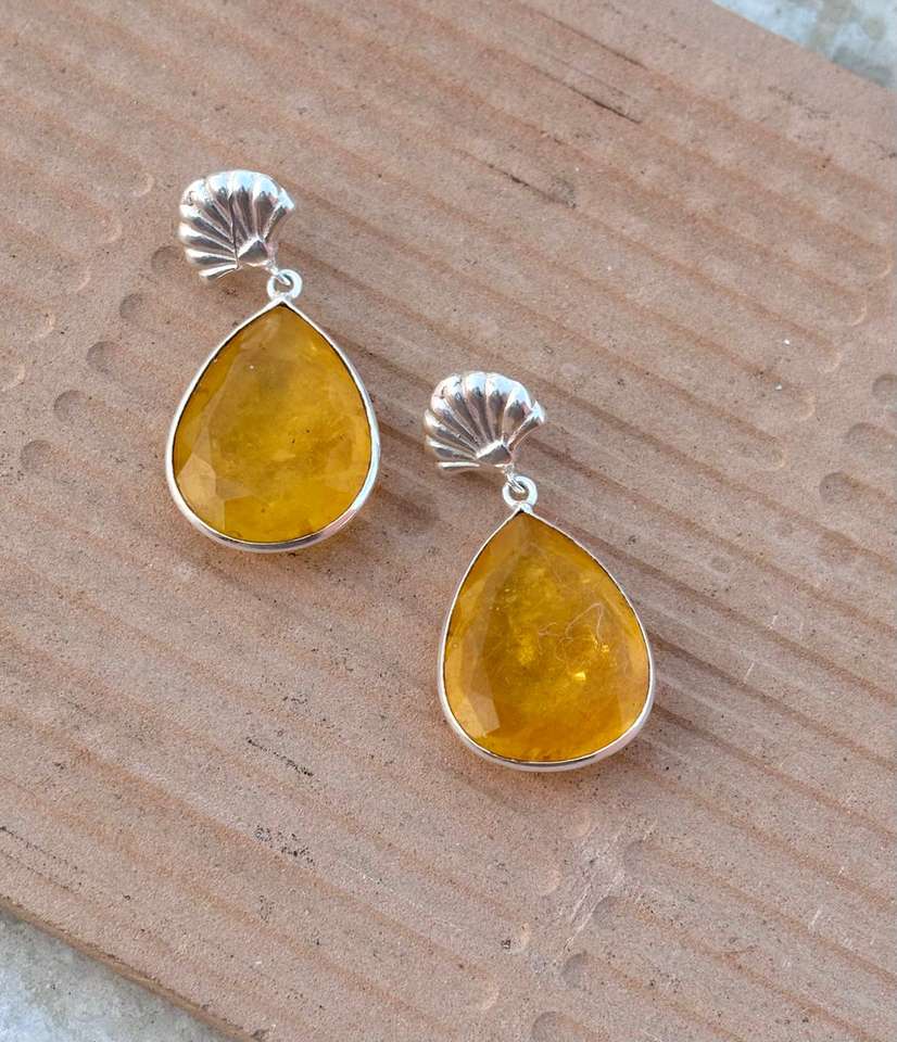 925 Sterling Silver Earring Yellow Sapphire Crystal Cute for Anniversary Party September Birthstone 100%Yellow Sapphire Earring