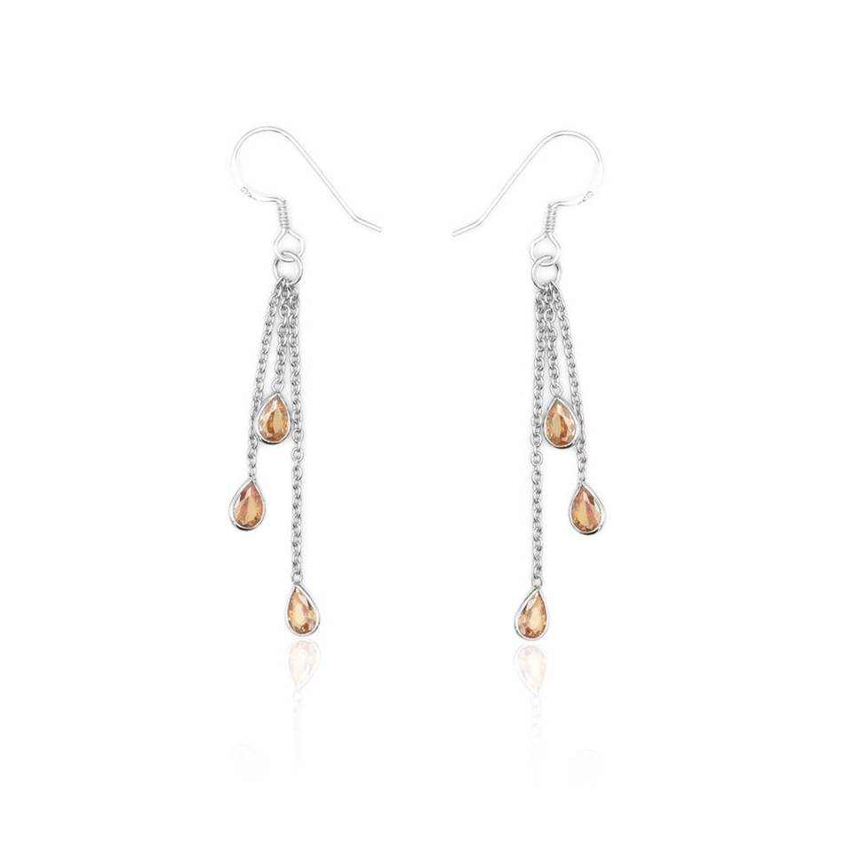 925 Sterling Silver Earring with Genuine Citrine Bezel Women's Fashion Jewelry Gift for Her