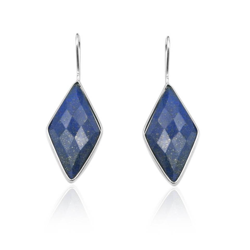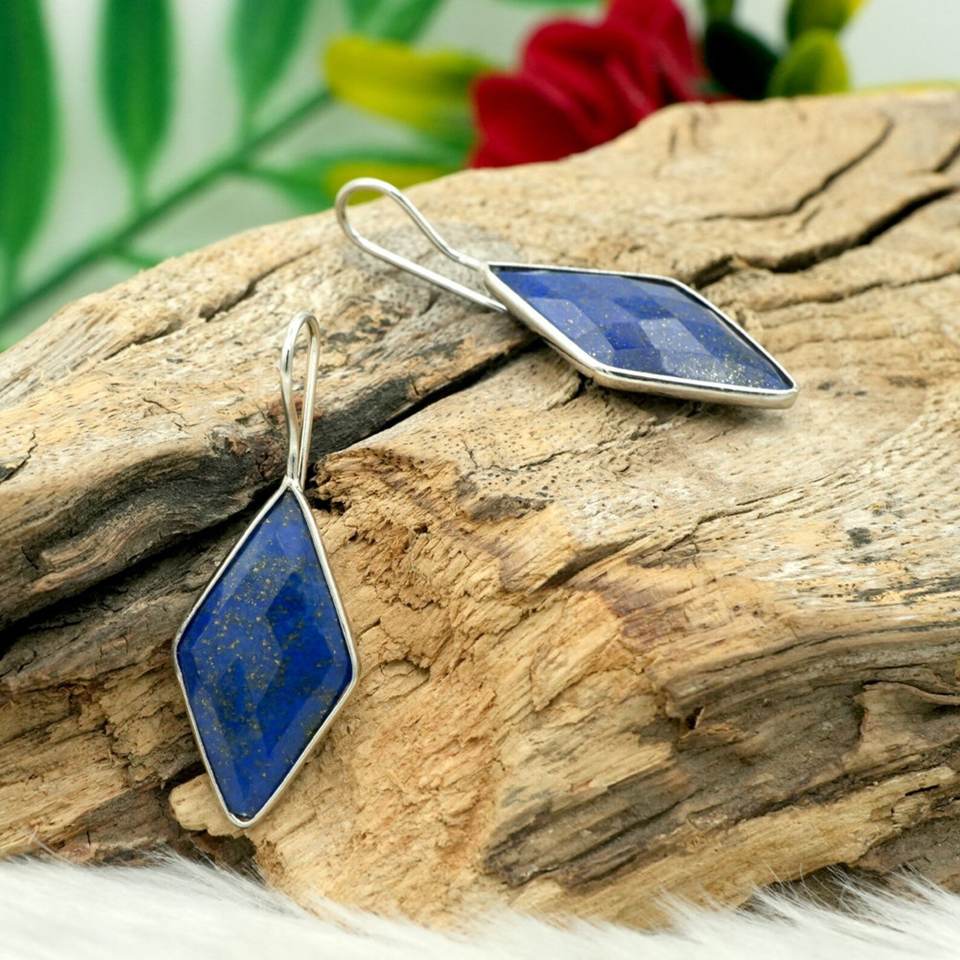 925 Sterling Silver Earring with Natural Fancy Kite Shape Faceted Lapis Lazuli Gemstone Crystal Jewelry E0371-GS