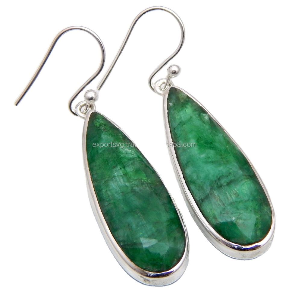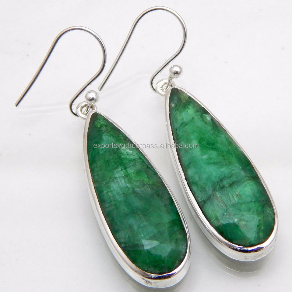 925 Sterling Silver Earrings Fine Fashion Jewelry Dyed Emerald Gemstone Drop Gold Plated Cute Popular Wedding Gift for Her Party