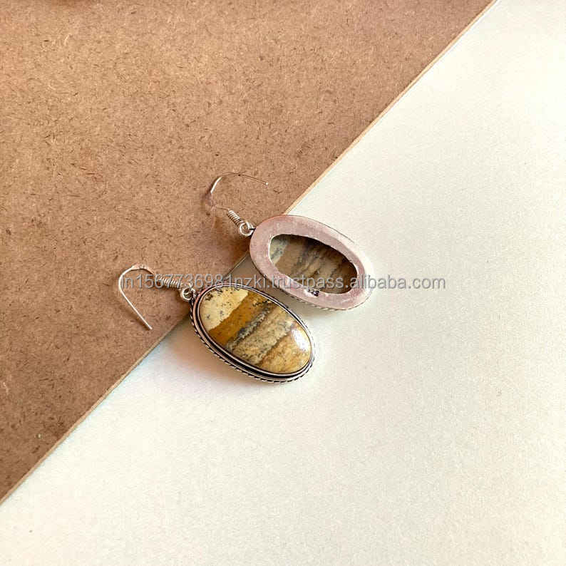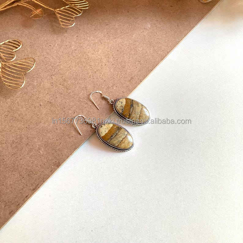925 Sterling Silver Earrings Picture Jasper Gemstone Earrings Handmade Earrings Jasper Jewelry Christmas Gifts