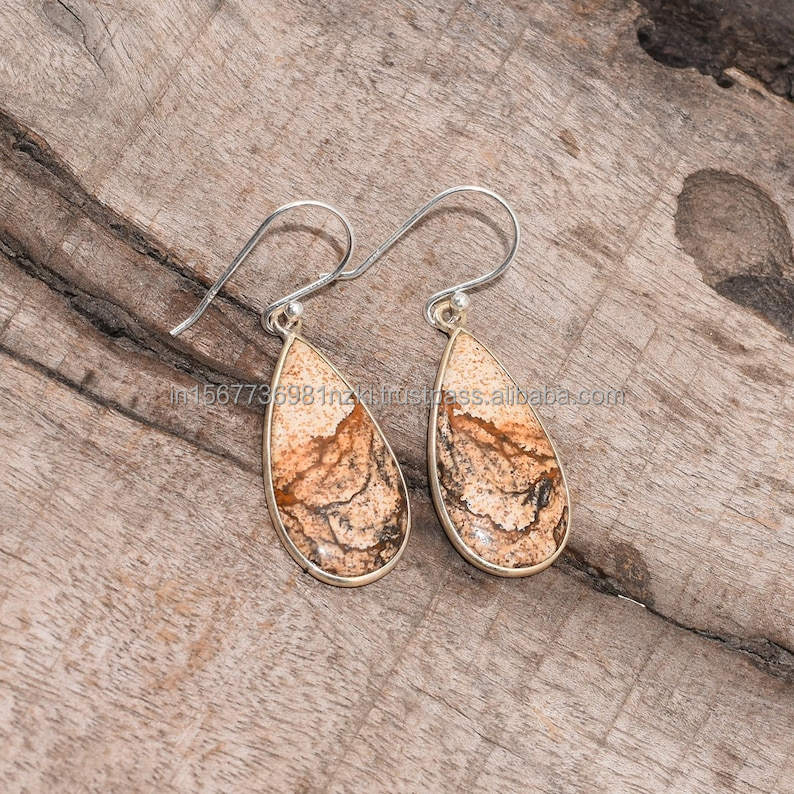 925 Sterling Silver Earrings Picture Jasper Gemstone Earrings Handmade Earrings Jasper Jewelry Christmas Gifts