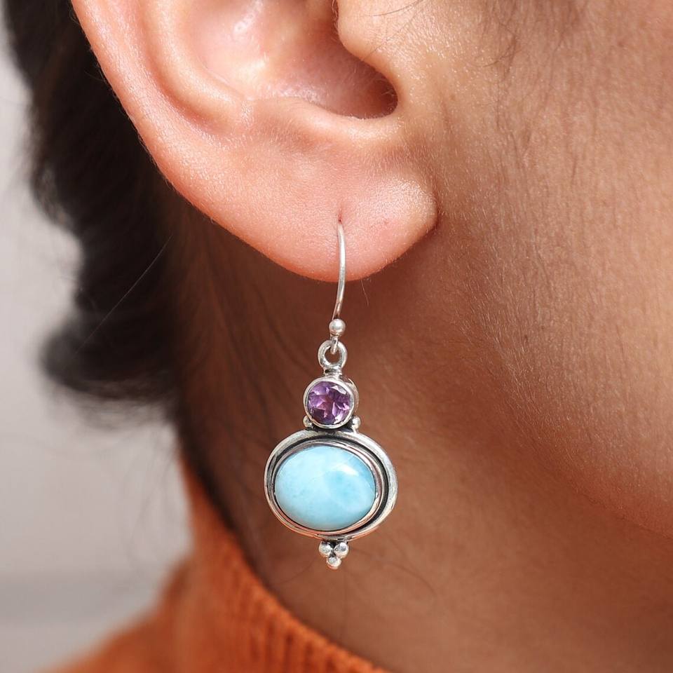 Product Name:Natural Larimar Gemstone Silver Earrings