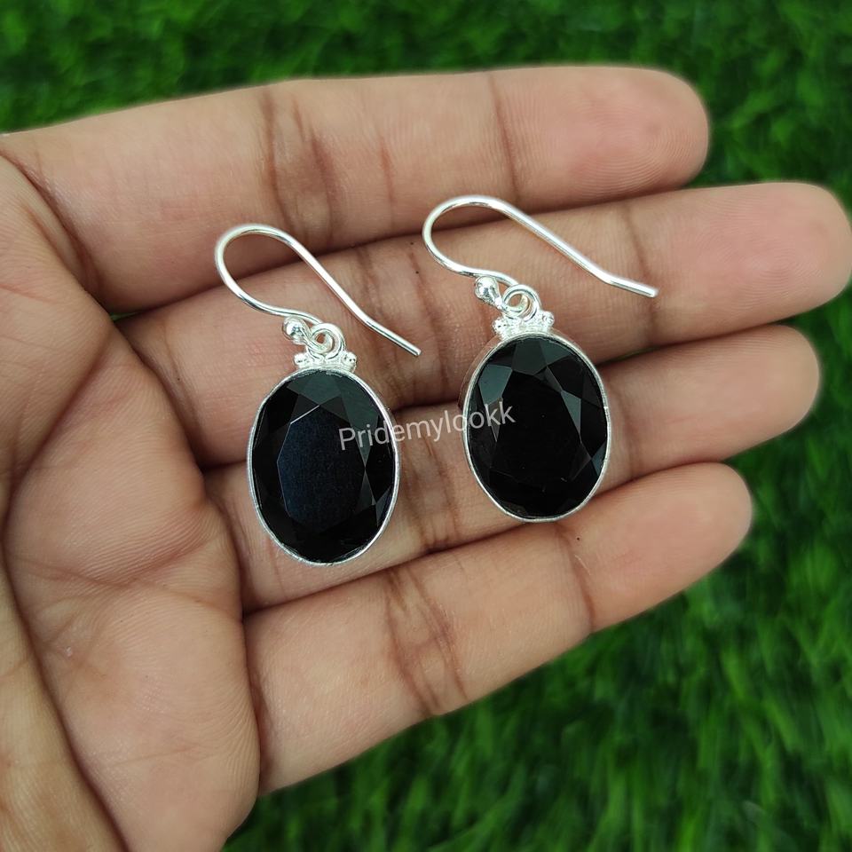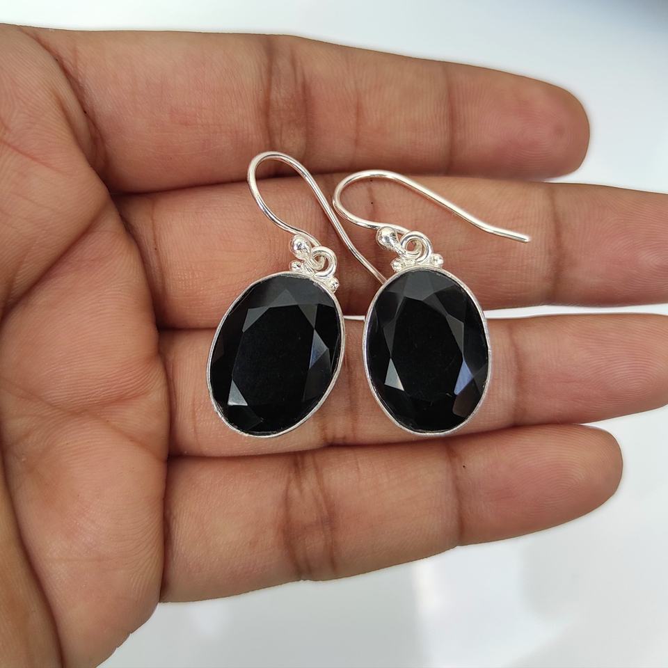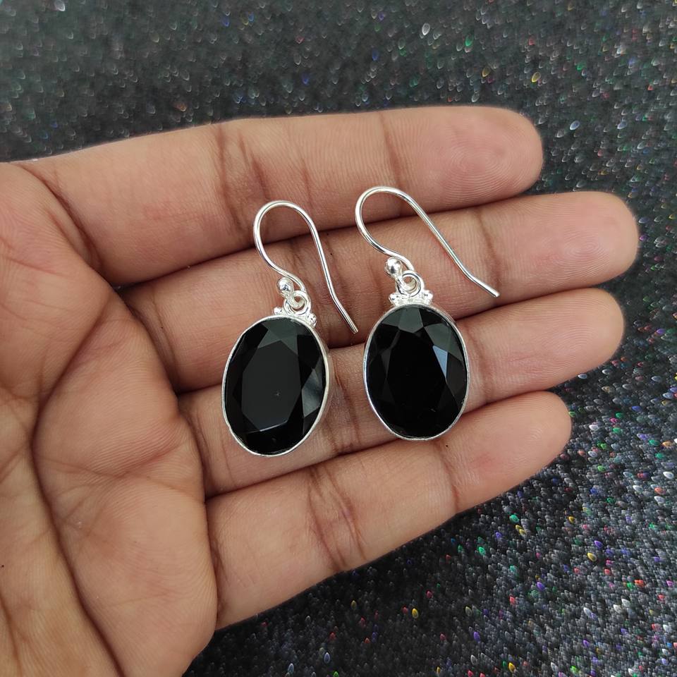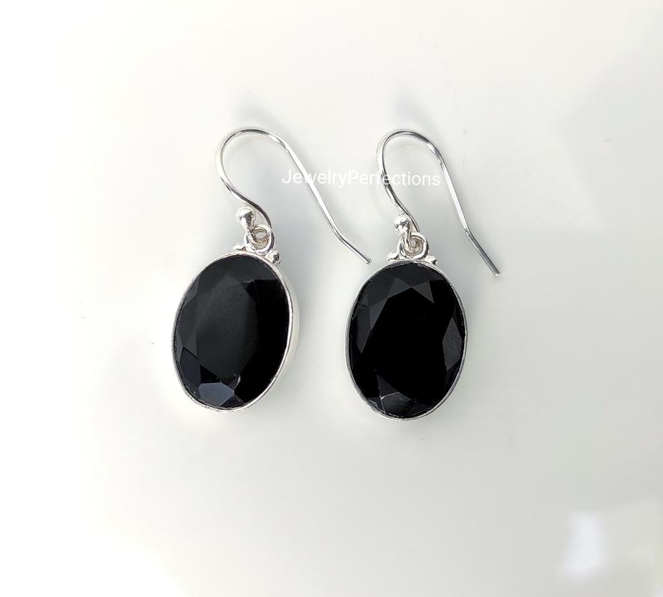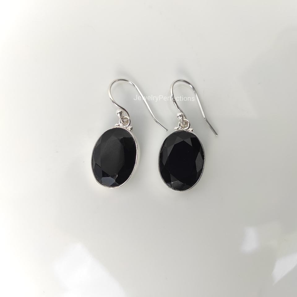 Product name:Faceted Cut Oval Black Onyx Dangle Earrings