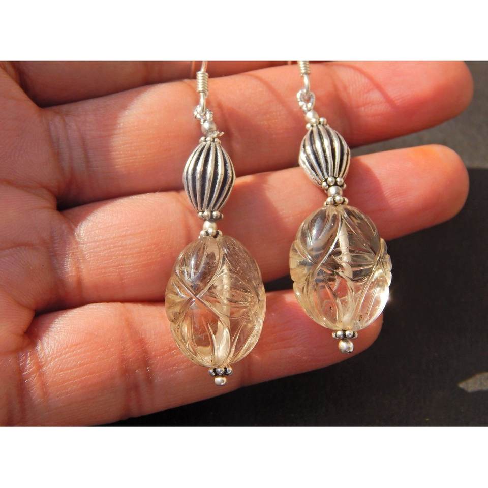 925 Sterling Silver Earrings with Carved Smoky Quartz Beads Fashionable Combo Model E0483-GS