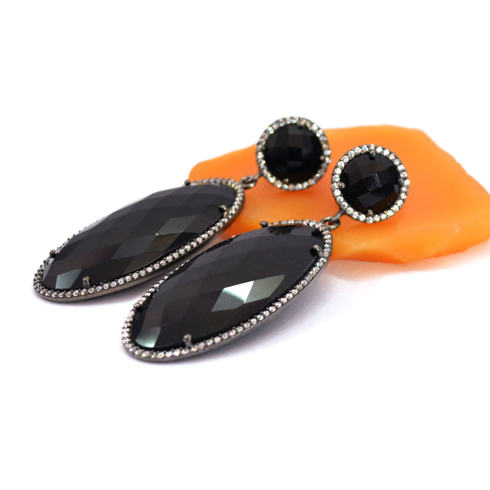 925 Sterling Silver Elegant Marquise Shape Earring Black Onyx Natural Gemstone Trendy Statement Jewelry for Weddings
