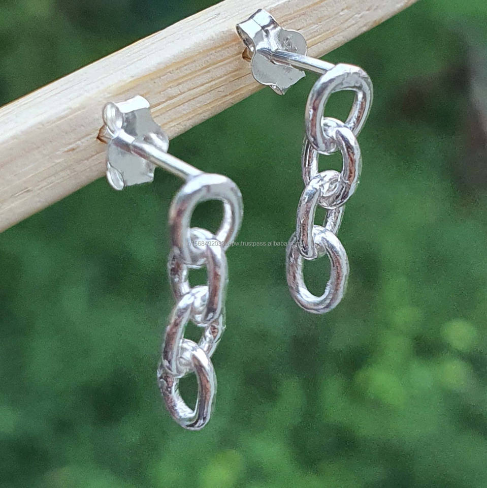 Product Name:Chain Link 925 Sterling Silver Dangle Stud Earrings