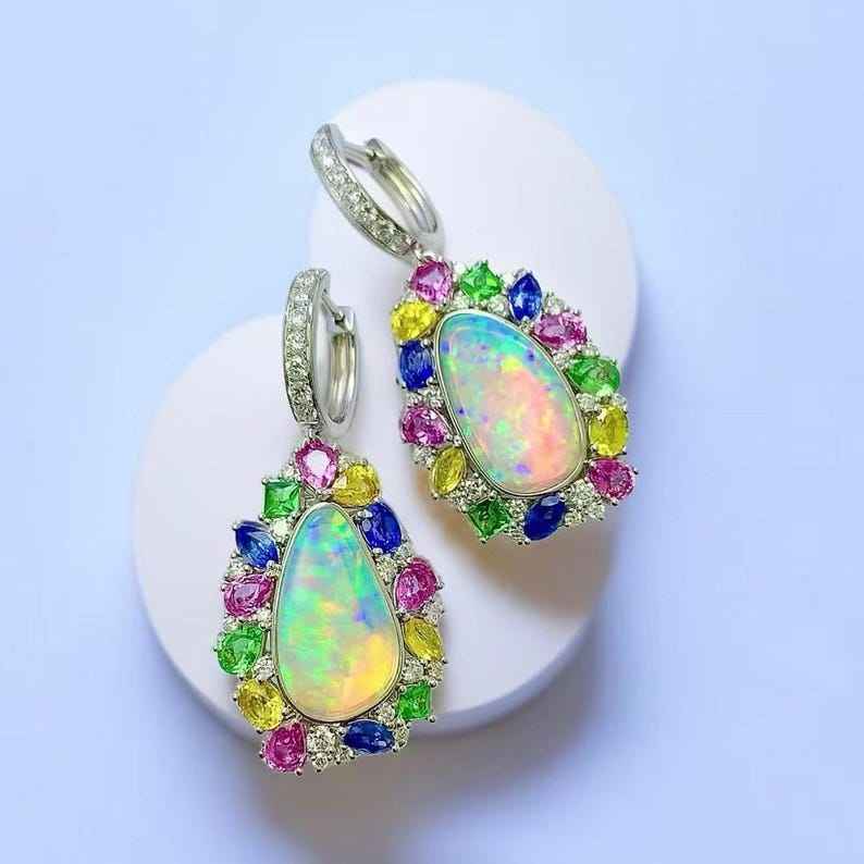 925 Sterling Silver Elegant Opal Earrings Set Natural Crystal Gemstone Wedding Jewelry Pear Cut IGI Certified Perfect Birthday
