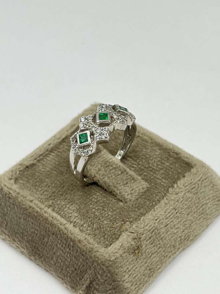 925 Sterling Silver Emerald & CZ Ring | Handmade Gemstone Ring | Fine Silver Jewelry Manufacturer from India