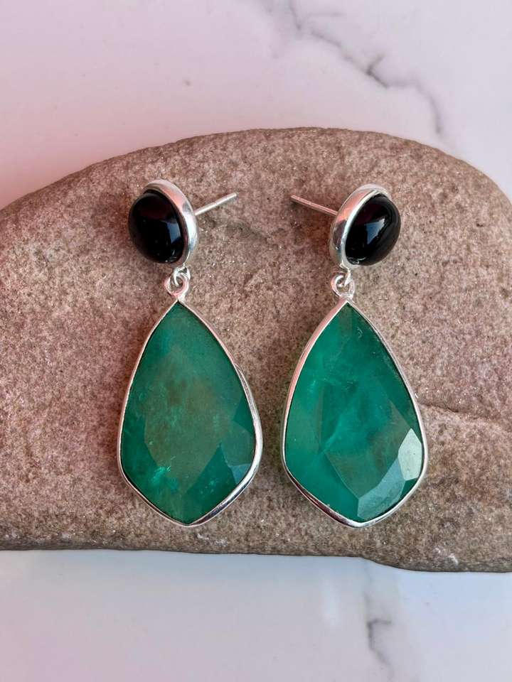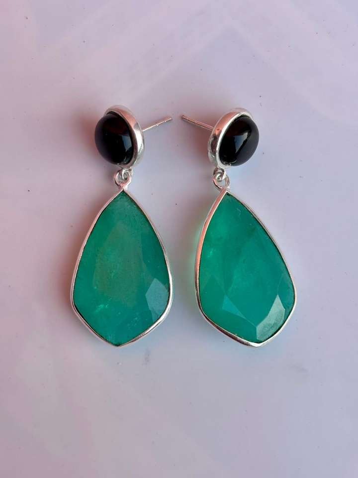 925 Sterling Silver Emerald With Black Onyx Handmade Earring Beautiful Women Earring .